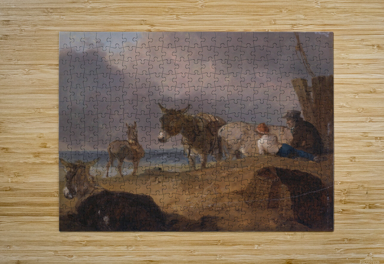 Donkeys and Figures on a Beach Julius Caesar Ibbetson Puzzle printing