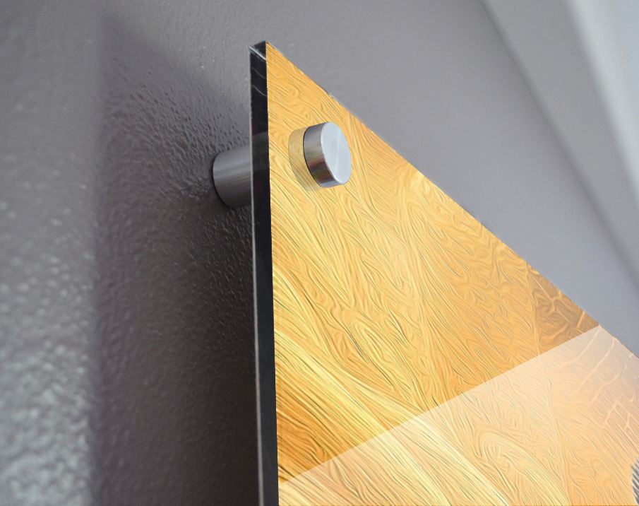 Printed to the edge - Ready to hang - provided with 4 premium polished aluminum stand off ( wall screws and mounting hardware provided )