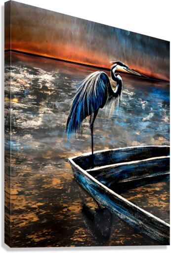 Heron On Boat Canvas print
