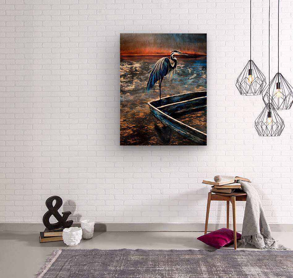 Heron On Boat  Wood print