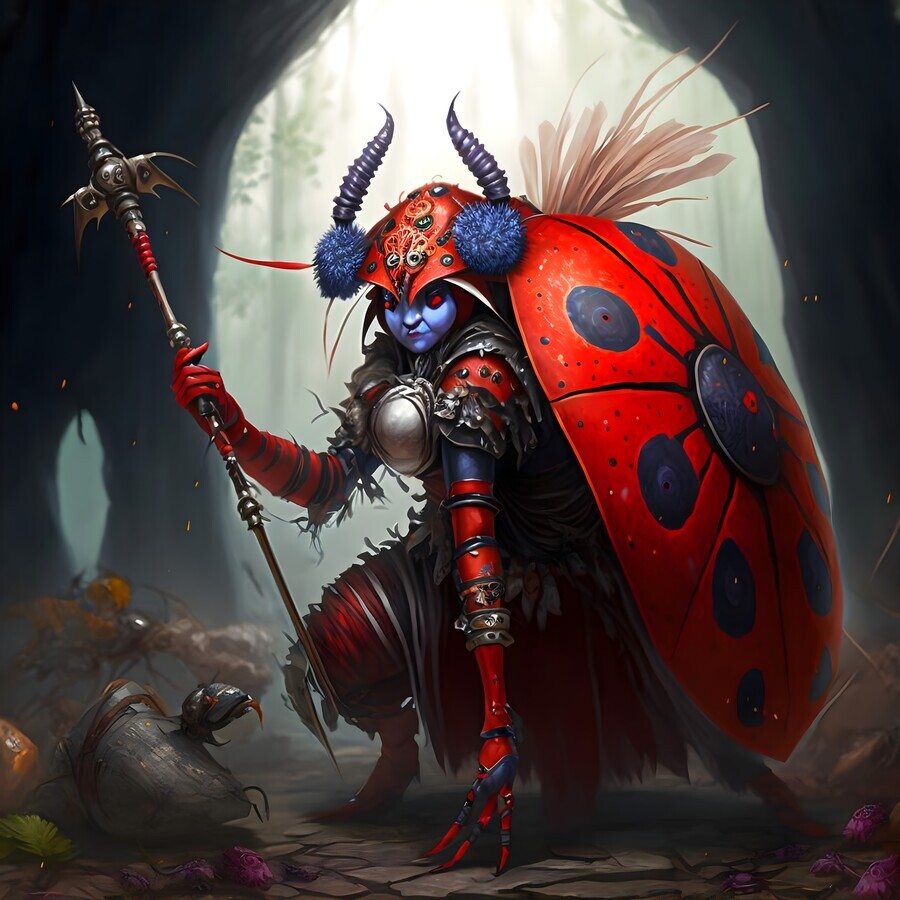 The Ladybug Warrior Fantasy Battle is an ultra-realistic painting that depicts a fierce and epic battle between a ladybug spider warrior and her enemi...[+]