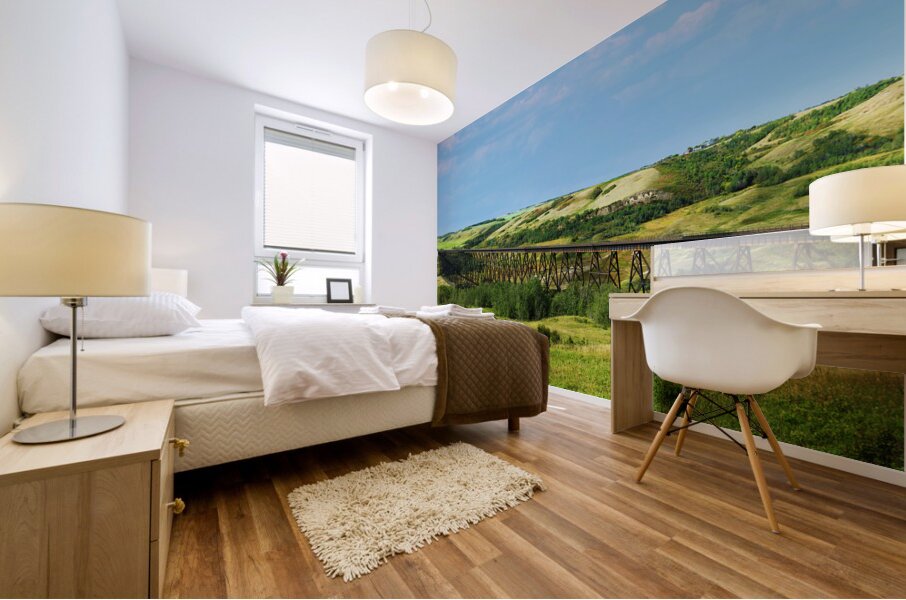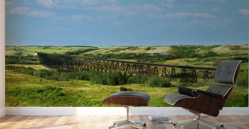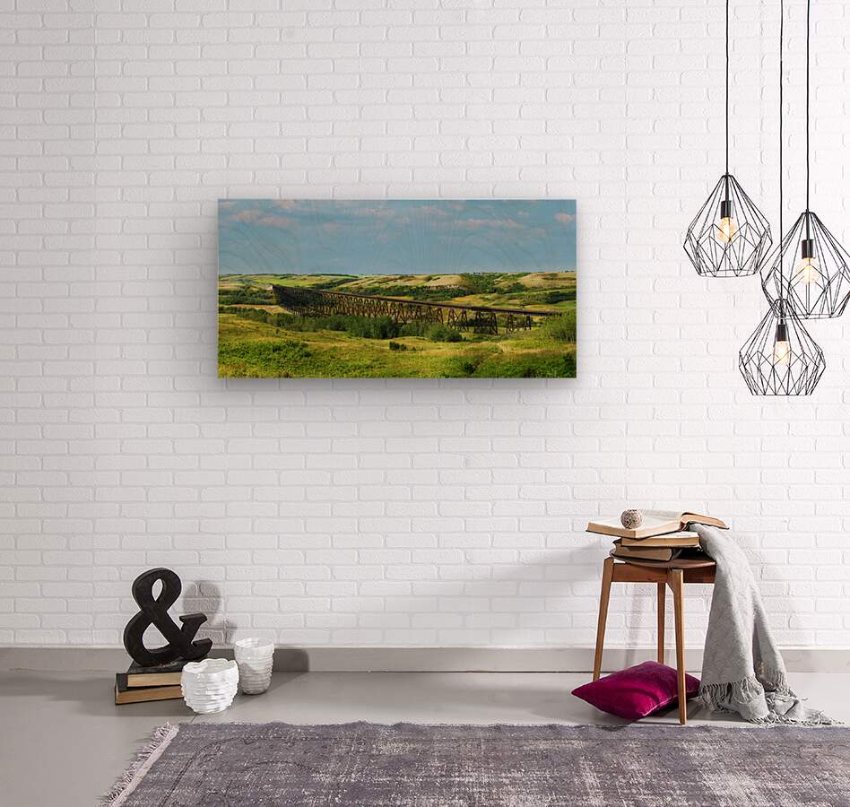 Rising Above: The Magnificent Fabyan Trestle in Albertas Breathtaking Landscape  Wood print