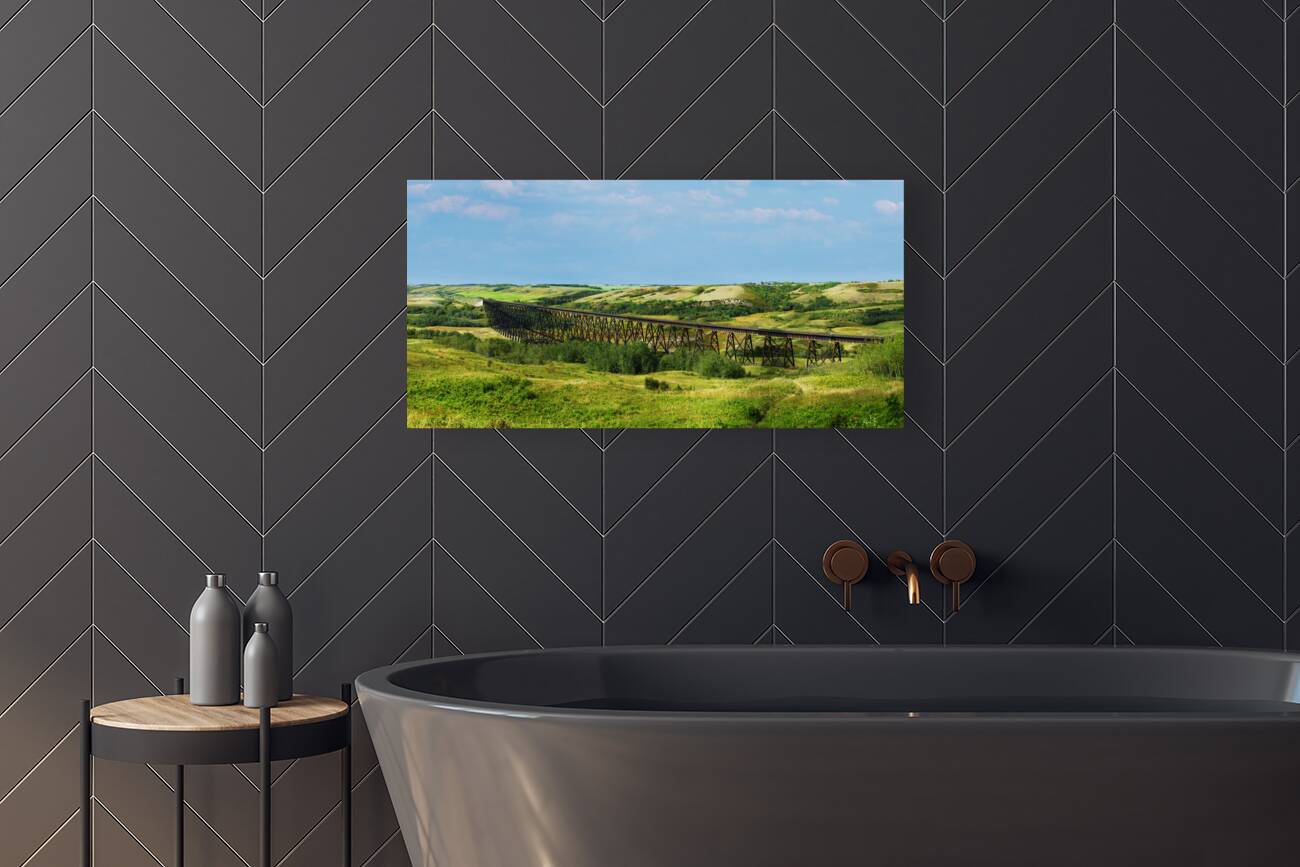 ABOUT THIS ARTWORK: RISING ABOVE: THE MAGNIFICENT FABYAN TRESTLE IN ALBERTAS BREATHTAKING LANDSCAPE