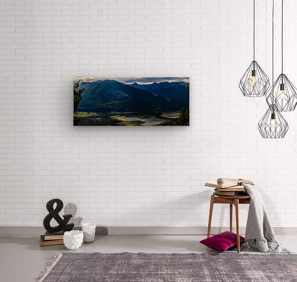 Summit Serenity: The Majestic View from Mount Norquay Lookout over Vermilion Lakes  Wood print