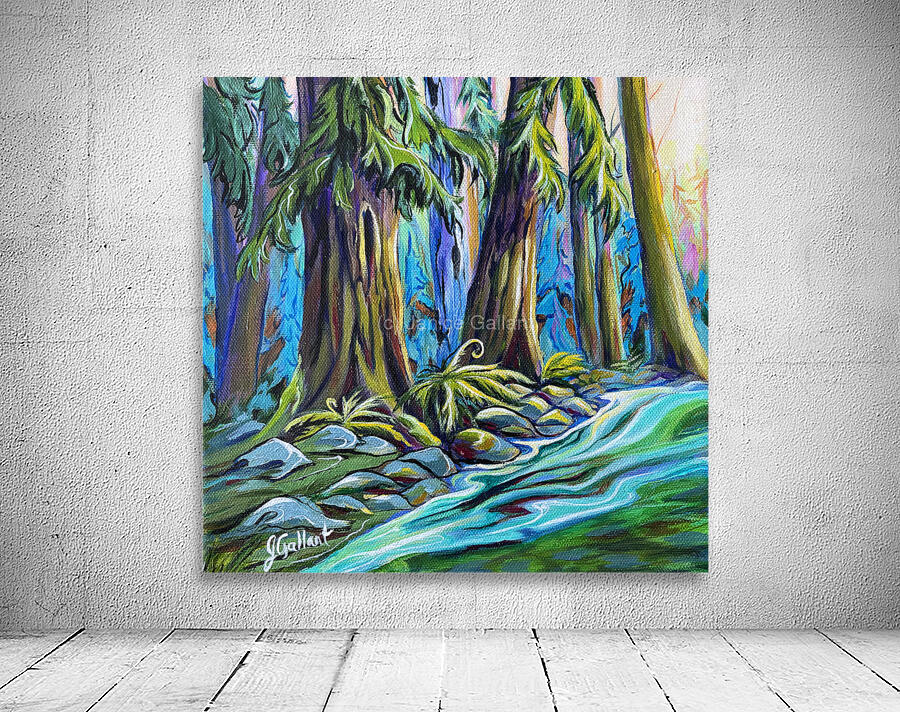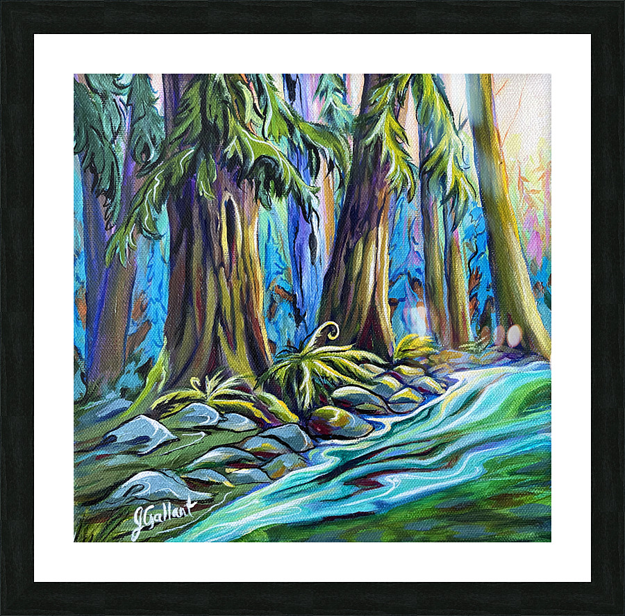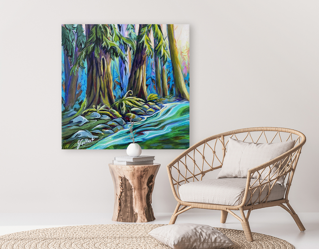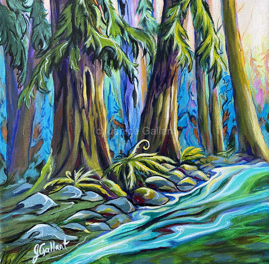 This painting was inspired by a beautiful journey to Tofino, B.C. The drive through the majestic forest was truly magical and we stopped several times to enjoy the mystical magic of this area.