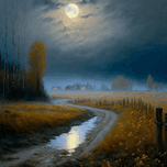 This oil painting depicts a serene autumnal scene , capturing the essence of the season with its warm and earthy tones. The artist has used visible te...[+]