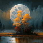 This oil painting depicts a serene autumnal scene , capturing the essence of the season with its warm and earthy tones. The artist has used visible te...[+]