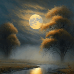This oil painting depicts a serene autumnal scene , capturing the essence of the season with its warm and earthy tones. The artist has used visible te...[+]