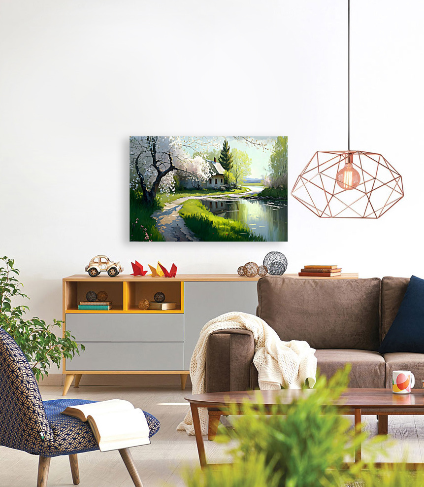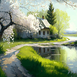 Oil paintings depicting spring are works of art in which I present the beauty and spontaneity of the season. They show the luxuriance of the natural world at this time, with colorful flowers blooming, fresh green leaves on the trees, and bright blue skies. In these paintings I often use different techniques to capture the essence of spring. I can apply thick, textured brushstrokes to create a sense of depth and movement in the scene. I can also use different colors, mixing them to create soft, subtle shades or bold, vibrant shades that evoke the energy and vitality of the season. Typical motifs for spring oil paintings are landscapes, gardens and still life compositions with flowers or other natural elements. They can also include characters such as people enjoying outdoor activities or animals playing in a spring landscape. In general, oil paintings depicting spring are a celebration of the natural world and the joy and renewal that accompany the arrival of this beautiful season. They can inspire a sense of wonder and appreciation for the beauty around us, and serve as a reminder to stop and enjoy the simple pleasures of life.