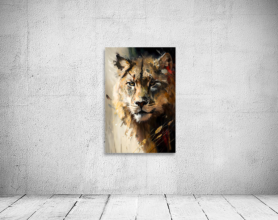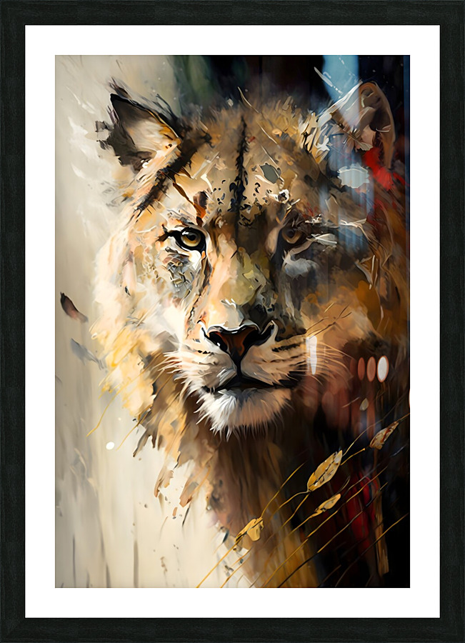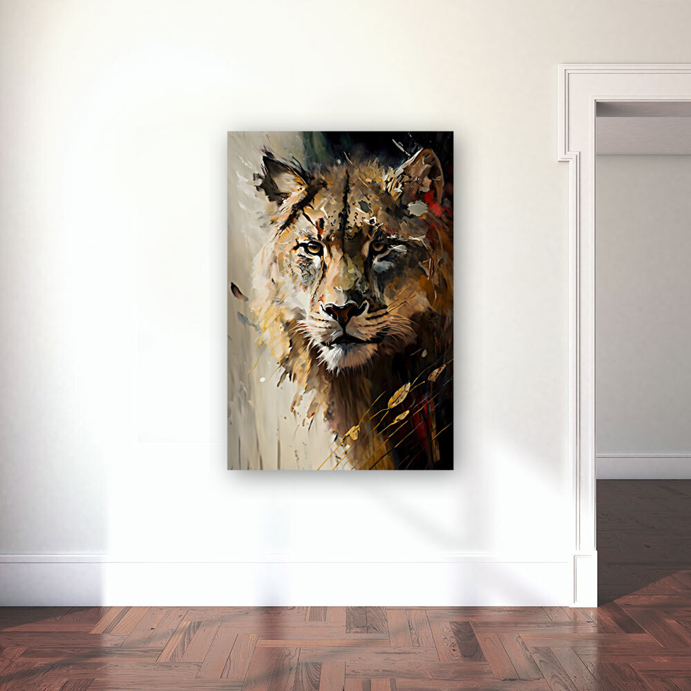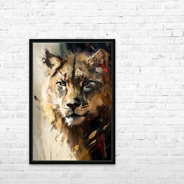 This oil painting depicts a wild animal with highly visible brushstrokes that give it a dynamic and textured look. The brushwork is loose and expressive, conveying an impression of movement and energy that captures the essence of the wild nature of the animal. The animal itself is painted with great detail and realism, with carefully crafted textures and colors that bring it to life. Its fur seems to ripple and gleam in the light, while its eyes are bright and piercing, giving a sense of intelligence and alertness. The background of the image is kept to a minimum, with perhaps only a few traces of leaves or terrain to suggest the animal's natural habitat. This allows the viewer to fully focus on the animal itself and appreciate its beauty and power. Overall, the painting is a stunning tribute to the majesty of the natural world and the awe-inspiring creatures that inhabit it. Bold and visible brushstrokes give the work a sense of immediacy and intimacy, attracting the viewer and inviting him to a close experience of the animal world.