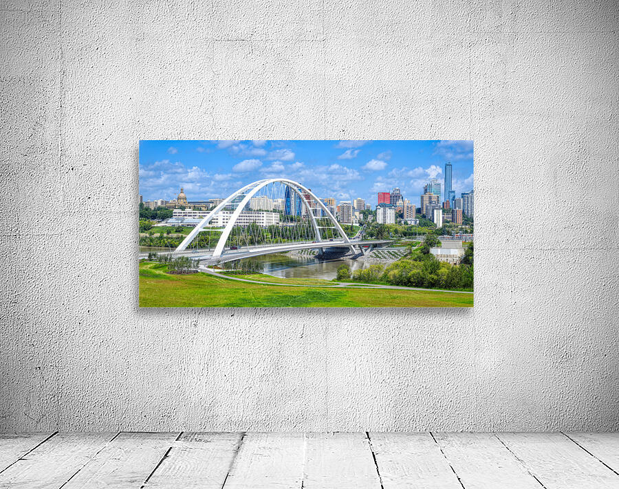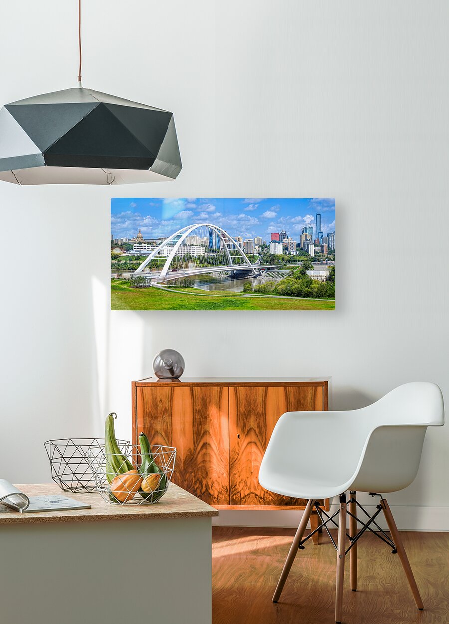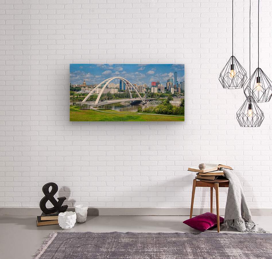 Edmontons Iconic Walter Dale Bridge: A Captivating Ultra-High Resolution Photograph of Modern Architecture and Natural Splendor  Wood print