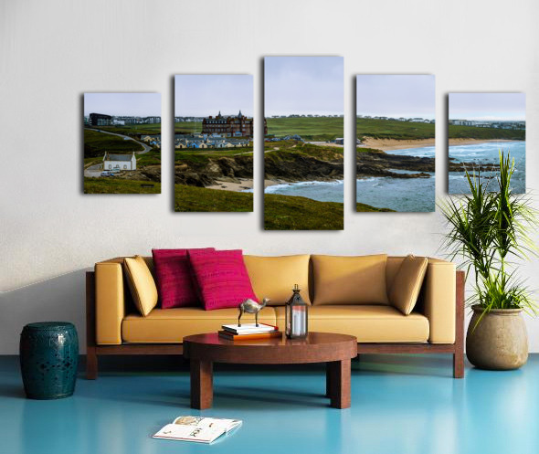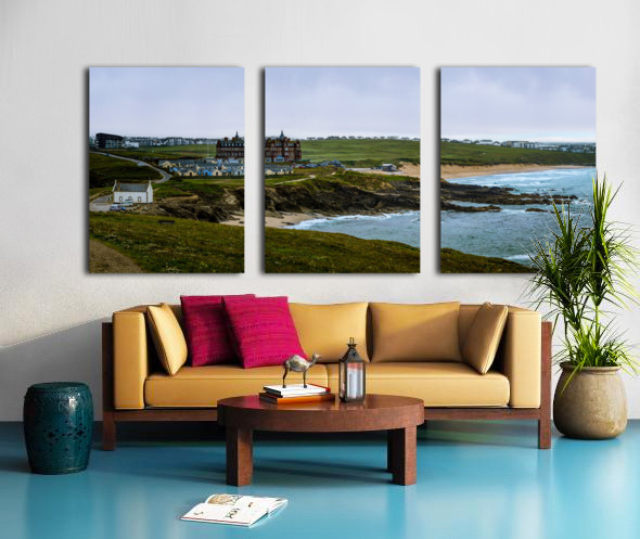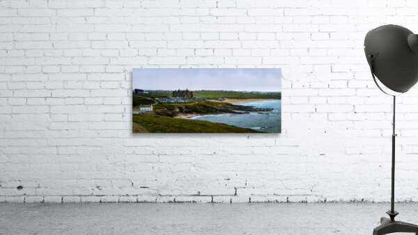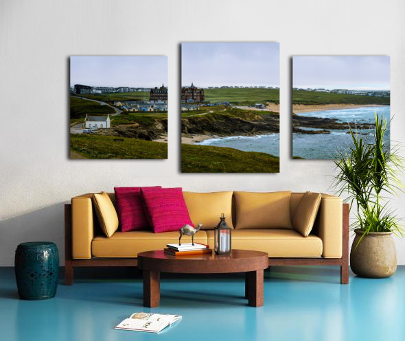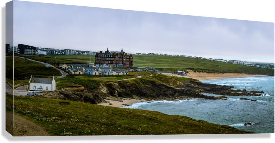 Tranquil Majesty: The Headland Hotel and Fistral Beach on a Rainy Morning Canvas print