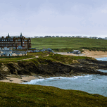 TRANQUIL MAJESTY: THE HEADLAND HOTEL AND FISTRAL BEACH ON A RAINY MORNING