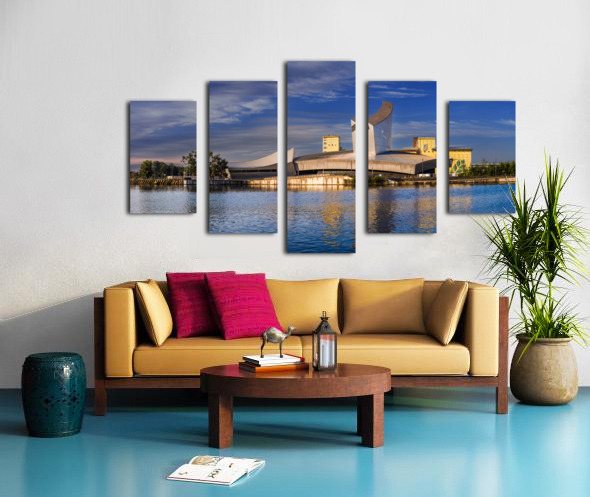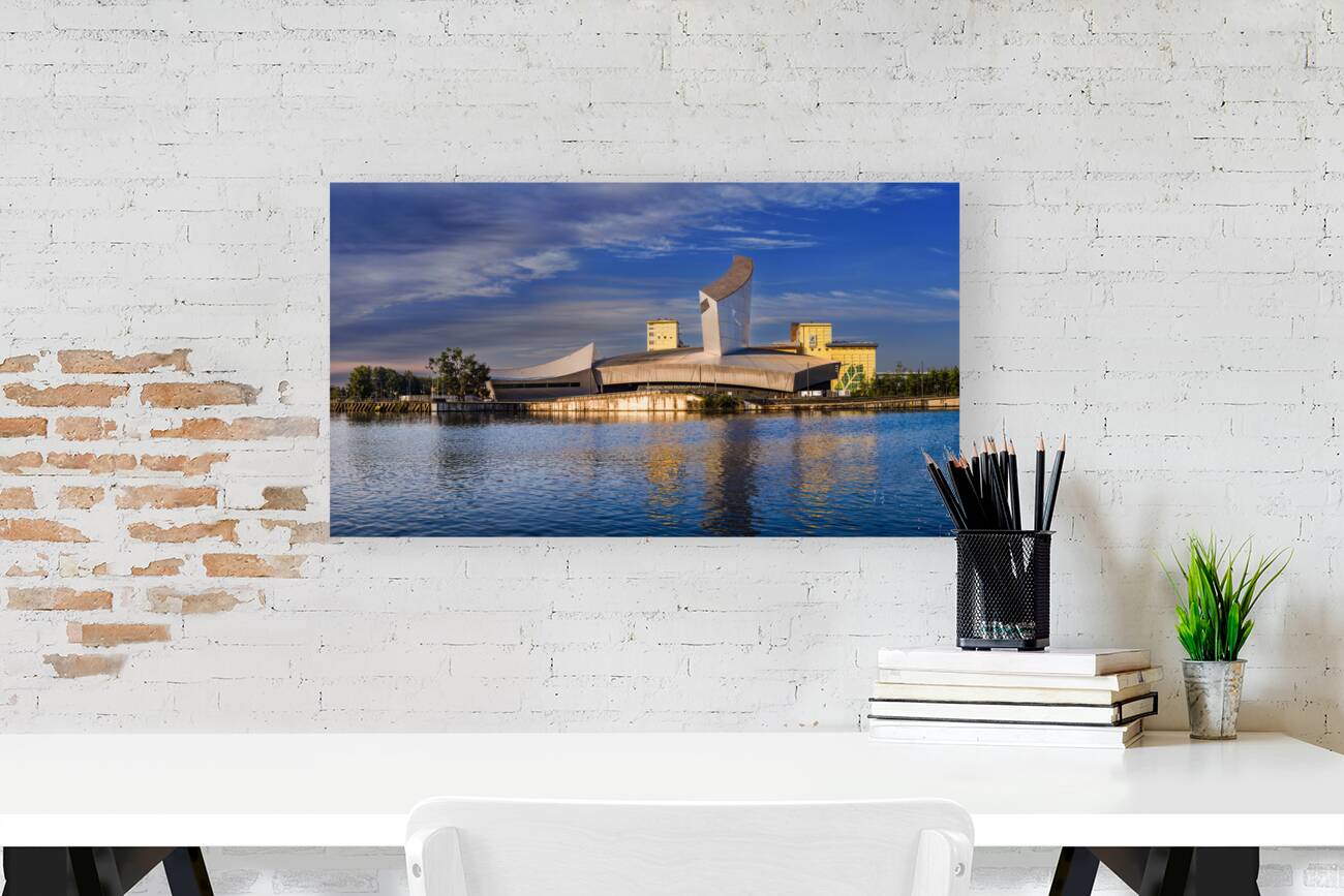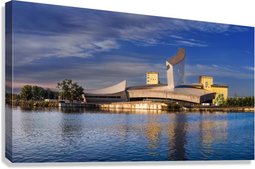 Peaceful Morning at Manchester Quays: A High Resolution View of the Imperial War Museum Canvas print