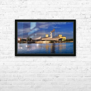 Get this artwork "Peaceful Morning at Manchester Quays: A High Resolution View of the Imperial War Museum" in a framed print.