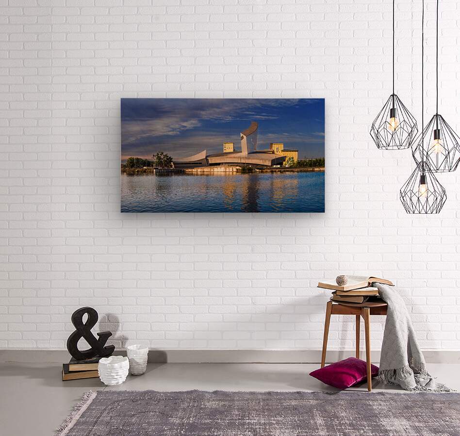Peaceful Morning at Manchester Quays: A High Resolution View of the Imperial War Museum  Wood print