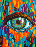 I always wanted to paint a rainbow eye but was too intimidated to try. Finally, I plucked up my courage. In the words of Monty Python “and now for something completely different!” I finally did it. What do you think? Using my all-time favorite color scheme of teal and orange, the reflections in the eye are the most mesmerizing part. Perfect for the art lover looking to add a unique touch to their home.