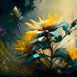 "Flower World" is a stunning collection of oil paintings that celebrates the beauty and vibrancy of nature. The artist's use of bold, visible brush strokes gives each painting a distinctive texture and depth, while the arrangement of flowers in a seemingly random manner creates a sense of natural chaos that is both mesmerizing and beautiful. Each bloom is painted with great attention to detail, from the delicate petals to the intricate stamen, making them seem to come alive under the brush strokes. The colors are rich and varied, ranging from deep purples and blues to bright yellows and pinks, and together they create a sense of joy and beauty that is truly mesmerizing. The visible brushwork and textured surface of the paintings add an additional layer of interest, inviting the viewer to come closer and explore the intricacies of the artist's technique. As you gaze upon these works of art, you can almost feel the artist's love for nature and their passion for artistic expression. "Flower World" is not just a collection of botanical paintings, but a celebration of the beauty and diversity of the natural world. Whether you are an art lover, a nature enthusiast, or simply someone who appreciates beauty, these paintings are sure to captivate and inspire you.