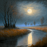 This oil painting depicts a serene autumnal scene , capturing the essence of the season with its warm and earthy tones. The artist has used visible te...[+]