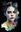 This painting depicts the portrait of a young girl with a striking and expressive face. The portrait has been created using a watercolor technique, with black color dominating the composition. The style of the painting is reminiscent of a black and white photograph, with a high level of detail and contrast. The girl's face is the focal point of the painting, with her features and expression rendered in a highly realistic manner. Her eyes are especially captivating, conveying a sense of depth and emotion that draws the viewer in. The use of watercolor lends a softness and fluidity to the painting, creating a sense of movement and dynamism despite the static subject matter. Overall, this painting is a powerful and evocative work of art, showcasing the skill and talent of the artist in capturing the essence of their subject through the medium of watercolor.