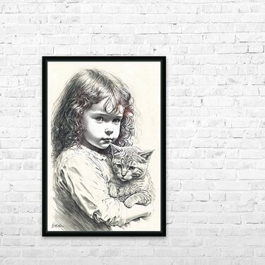 Girl with Kitten Frame print