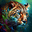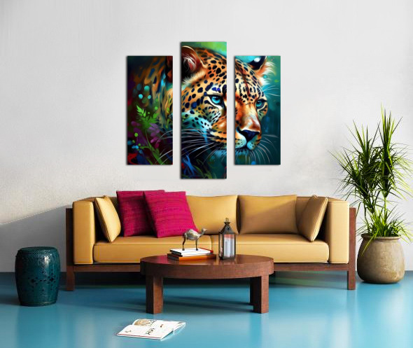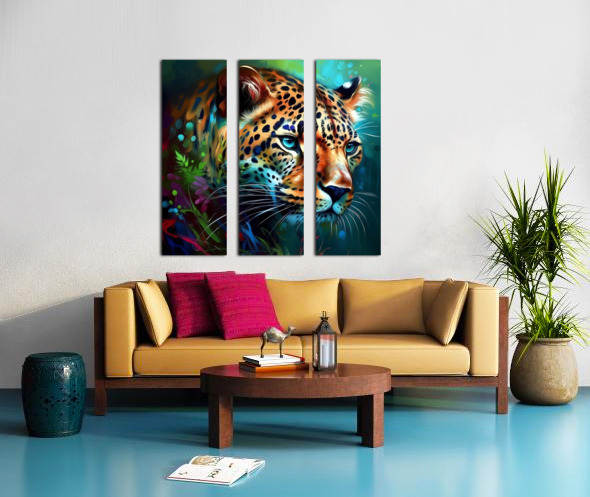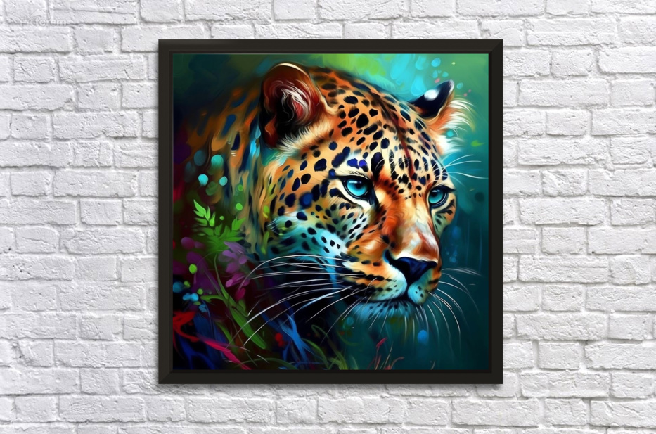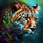This painting depicts a wild animal with highly visible brushstrokes that give it a dynamic and textured look. The brushwork is loose and expressive, conveying an impression of movement and energy that captures the essence of the wild nature of the animal. The animal itself is painted with great detail and realism, with carefully crafted textures and colors that bring it to life. Its fur seems to ripple and gleam in the light, while its eyes are bright and piercing, giving a sense of intelligence and alertness. The background of the image is kept to a minimum, with perhaps only a few traces of leaves or terrain to suggest the animal's natural habitat. This allows the viewer to fully focus on the animal itself and appreciate its beauty and power. Overall, the painting is a stunning tribute to the majesty of the natural world and the awe-inspiring creatures that inhabit it. Bold and visible brushstrokes give the work a sense of immediacy and intimacy, attracting the viewer and inviting him to a close experience of the animal world.