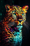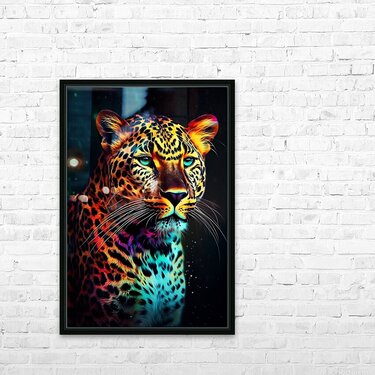 This painting depicts a wild animal with highly visible brushstrokes that give it a dynamic and textured look. The brushwork is loose and expressive, conveying an impression of movement and energy that captures the essence of the wild nature of the animal. The animal itself is painted with great detail and realism, with carefully crafted textures and colors that bring it to life. Its fur seems to ripple and gleam in the light, while its eyes are bright and piercing, giving a sense of intelligence and alertness. The background of the image is kept to a minimum, with perhaps only a few traces of leaves or terrain to suggest the animal's natural habitat. This allows the viewer to fully focus on the animal itself and appreciate its beauty and power. Overall, the painting is a stunning tribute to the majesty of the natural world and the awe-inspiring creatures that inhabit it. Bold and visible brushstrokes give the work a sense of immediacy and intimacy, attracting the viewer and inviting him to a close experience of the animal world.