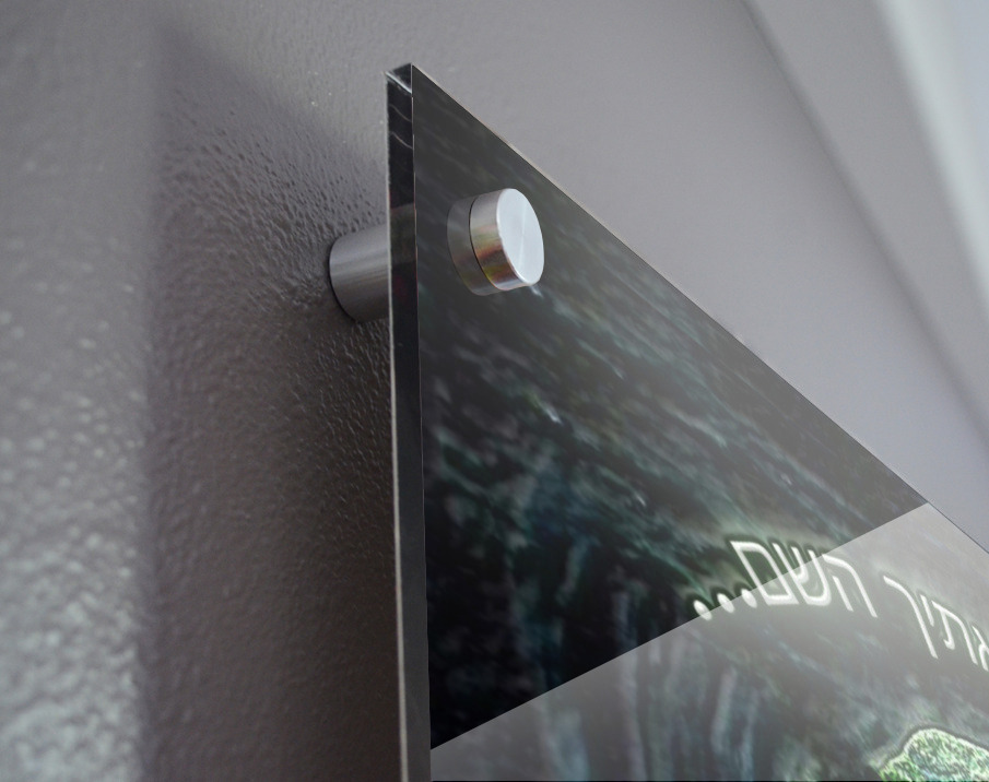 Printed to the edge - Ready to hang - provided with 4 premium polished aluminum stand off ( wall screws and mounting hardware provided )