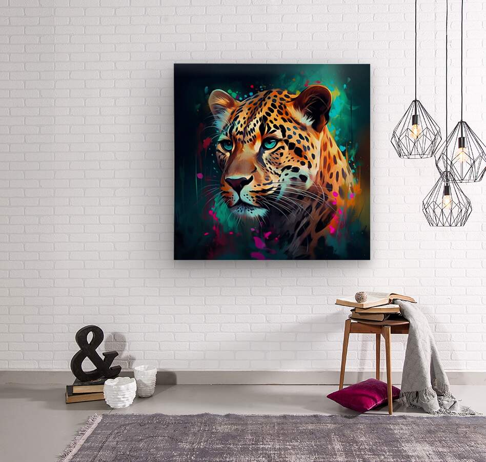 This painting depicts a wild animal with highly visible brushstrokes that give it a dynamic and textured look. The brushwork is loose and expressive, conveying an impression of movement and energy that captures the essence of the wild nature of the animal. The animal itself is painted with great detail and realism, with carefully crafted textures and colors that bring it to life. Its fur seems to ripple and gleam in the light, while its eyes are bright and piercing, giving a sense of intelligence and alertness. The background of the image is kept to a minimum, with perhaps only a few traces of leaves or terrain to suggest the animal's natural habitat. This allows the viewer to fully focus on the animal itself and appreciate its beauty and power. Overall, the painting is a stunning tribute to the majesty of the natural world and the awe-inspiring creatures that inhabit it. Bold and visible brushstrokes give the work a sense of immediacy and intimacy, attracting the viewer and inviting him to a close experience of the animal world.