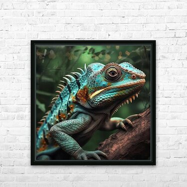 This painting depicts a wild animal with highly visible brushstrokes that give it a dynamic and textured look. The brushwork is loose and expressive, conveying an impression of movement and energy that captures the essence of the wild nature of the animal. The animal itself is painted with great detail and realism, with carefully crafted textures and colors that bring it to life. Its fur seems to ripple and gleam in the light, while its eyes are bright and piercing, giving a sense of intelligence and alertness. The background of the image is kept to a minimum, with perhaps only a few traces of leaves or terrain to suggest the animal's natural habitat. This allows the viewer to fully focus on the animal itself and appreciate its beauty and power. Overall, the painting is a stunning tribute to the majesty of the natural world and the awe-inspiring creatures that inhabit it. Bold and visible brushstrokes give the work a sense of immediacy and intimacy, attracting the viewer and inviting him to a close experience of the animal world.