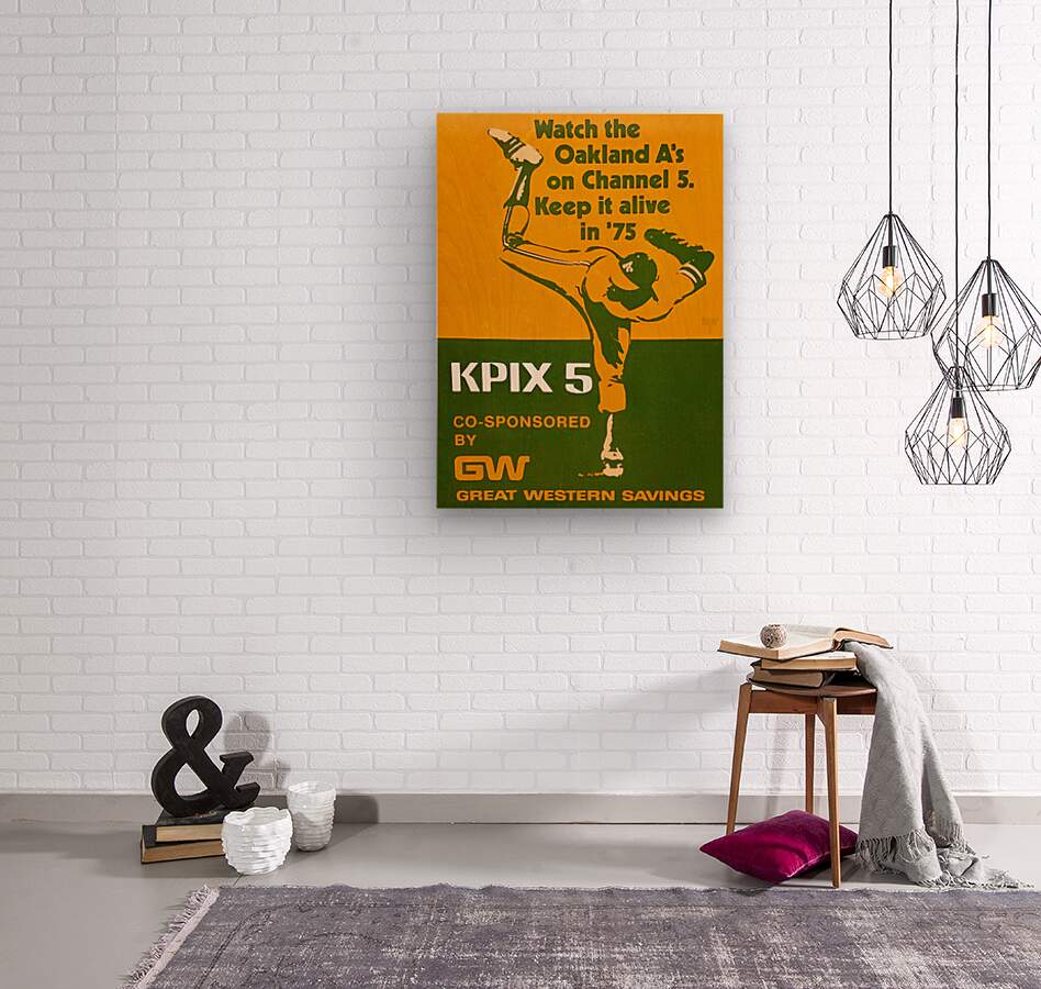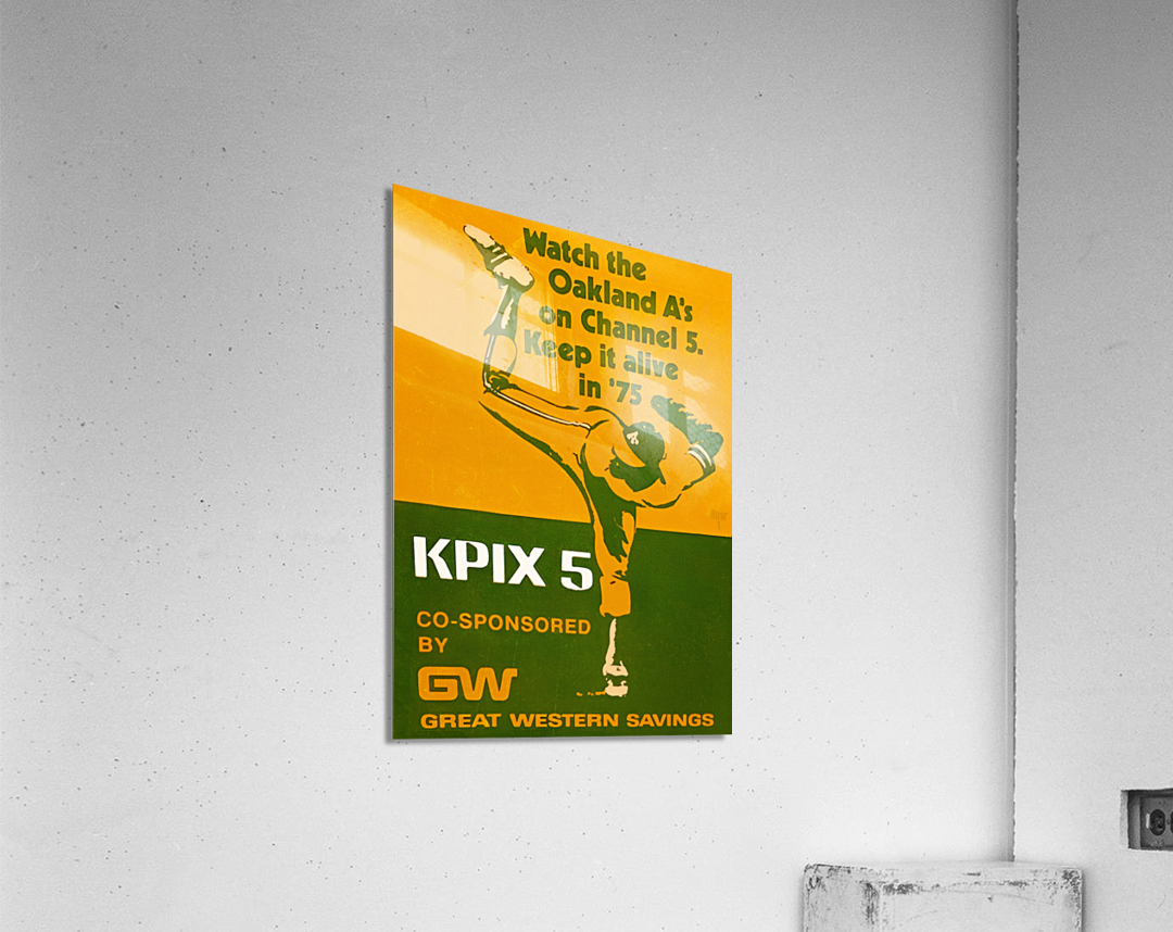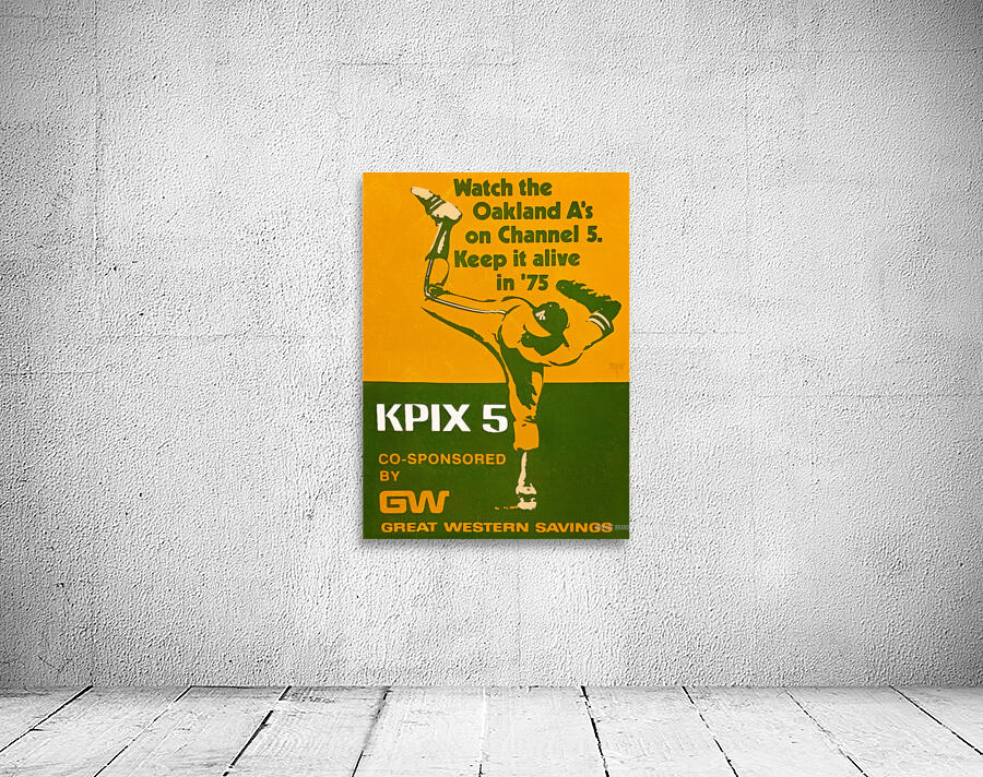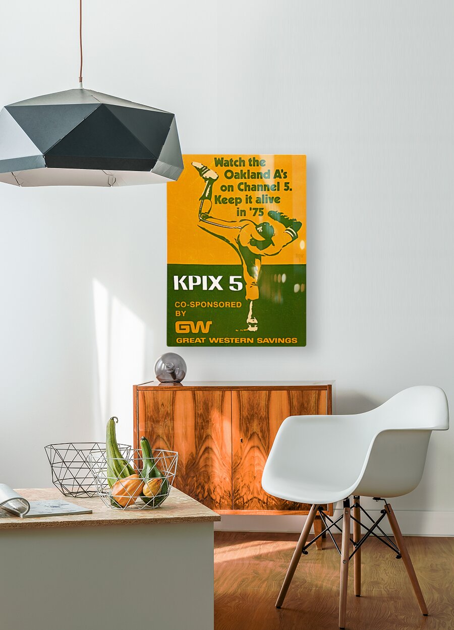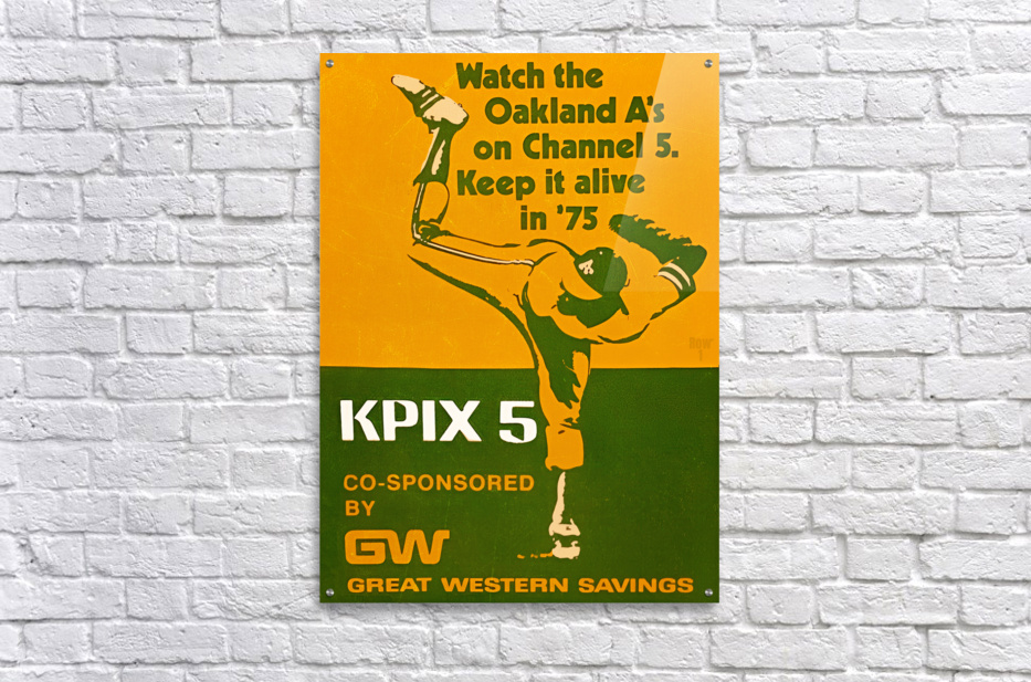 The 1975 Oakland A's won their 5th straight American League West title. Created from authentic 1975 Oakland Athletics KPIX Television Ad baseball memorabilia art in our collection, this Row One Brand throwback Oakland A's advertisement art will look fantastic in your game room or office. Derivative art © 2023 Row One Brand This historic baseball art print is not affiliated with, licensed, sponsored, authorized, or endorsed by any team, league, artist, athlete, coach, other brand, or any licensing entity. This print was created from historic 1975 memorabilia art published without a copyright notice.