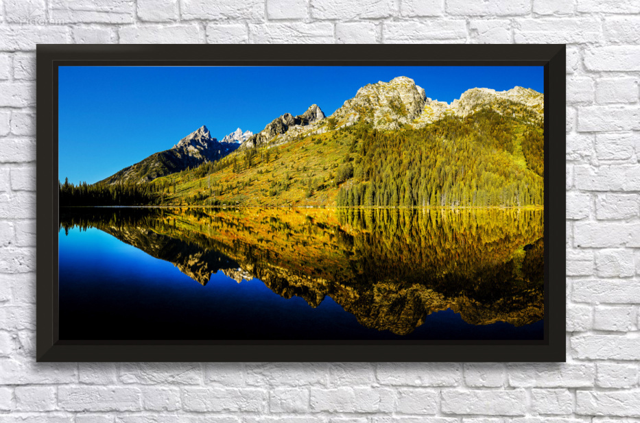 Amidst the Tetons, a gem lies hidden, A lake so beautiful, it seems forbidden, Crystal clear reflection of the mountains high, Changing colors hourly, under a vast sky. We arrived early, no one around, To witness nature's beauty, so profound, The lake, the mountains, wildflowers too, A sight so surreal, it feels brand new. But later, upon closer inspection, We found some people, in the opposite direction, Their presence unknown, on that quiet day, A reminder that nature's secrets, often stay. So here's a chance to bring that beauty home, A photograph so stunning, you'll never feel alone, With every glance, you'll be transported back, To that hidden gem, where nature's beauty never lacks.