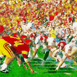 Battle in the Coliseum | Abstract USC-Oklahoma Football Watercolor Art | Row One | This throwback college football art will look fantastic in your ga...[+]