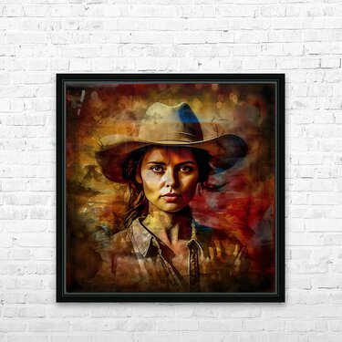 Combining the styles of impressionism, women from the Wild West and abstract art, the painting is a unique and fascinating work of art. The impressionist approach means that the painting is characterized by the use of light and color to capture fleeting moments in the life of a woman from the Wild West. The loose brushstrokes and overall impressionistic style create a sense of movement and energy, suggesting the dynamism and vitality of the Wild West. The Wild West woman herself was portrayed as a strong and independent figure, breaking with traditional gender roles and social norms. This can be achieved with bold colors, dynamic composition and expressive brushwork, capturing the spirit of the woman and the harsh landscape in which she lived. The abstract element of the image adds an extra layer of complexity, allowing the artist to play with form, shape and color in new and exciting ways. The abstraction is used to emphasize the emotional and mental state of the Wild West woman, suggesting her inner world and her relationship with the environment around her. Overall, the painting combining these three styles is a dynamic and exciting work of art, showcasing the energy and vitality of a Wild West woman while exploring the boundaries of representation and expression in art.