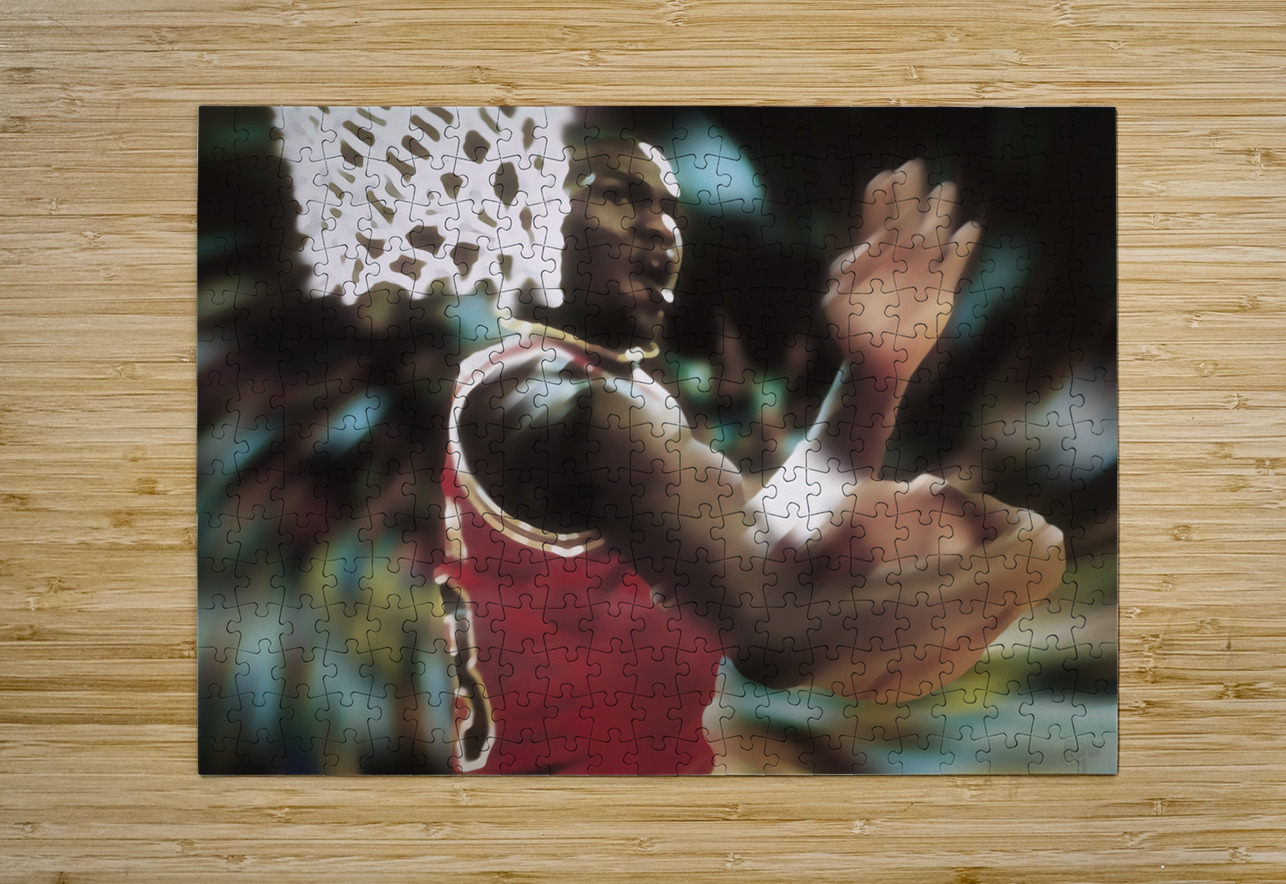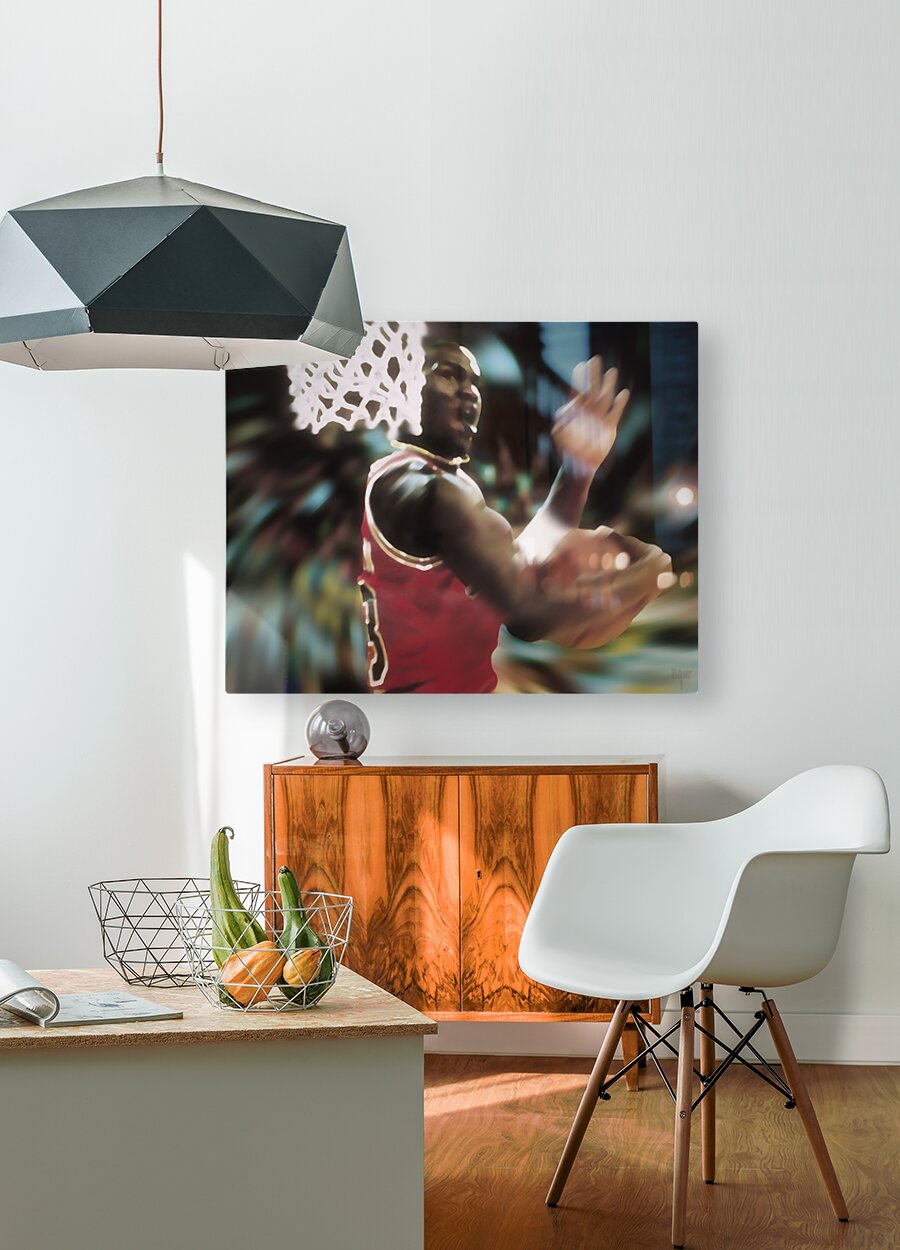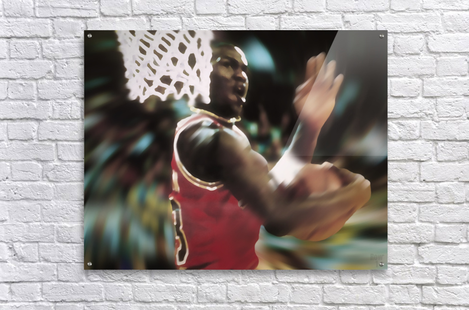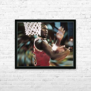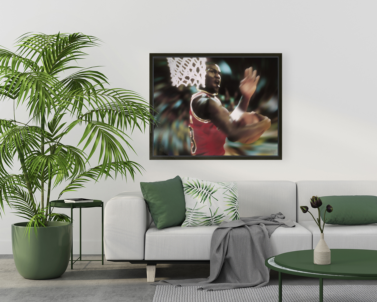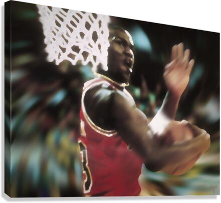 Face of Determination | Michael Jordan Dunk Watercolor Art Print | This stunning watercolor art print captures an iconic moment when rookie Michael Jordan soared through the air to deliver a powerful dunk in the 1985 NBA Dunk Contest. The print is rendered in a beautiful and delicate watercolor style with 3D motion effects, and it features a close-up of Jordan's face, which is full of determination and focus. The print is a must-have for any fan of Michael Jordan or basketball in general. This historic basketball watercolor art print is not affiliated with, licensed, sponsored, authorized, or endorsed by any team, league, artist, athlete, other brand, or any licensing entity. Keywords: Michael Jordan, basketball, dunk, watercolor art, art print, home decor, office decor, gift, fan gift, Michael Jordan fan gift, basketball fan gift, home decor for basketball fans, office decor for basketball fans