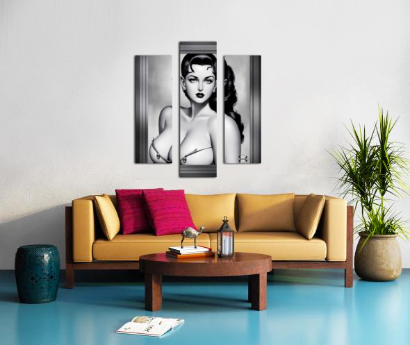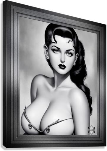 A Gorgeous Sultry 1930s Fantasy Pinup Girl Glamour AI Concept Art Portrait by Xzendor7 Canvas print