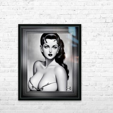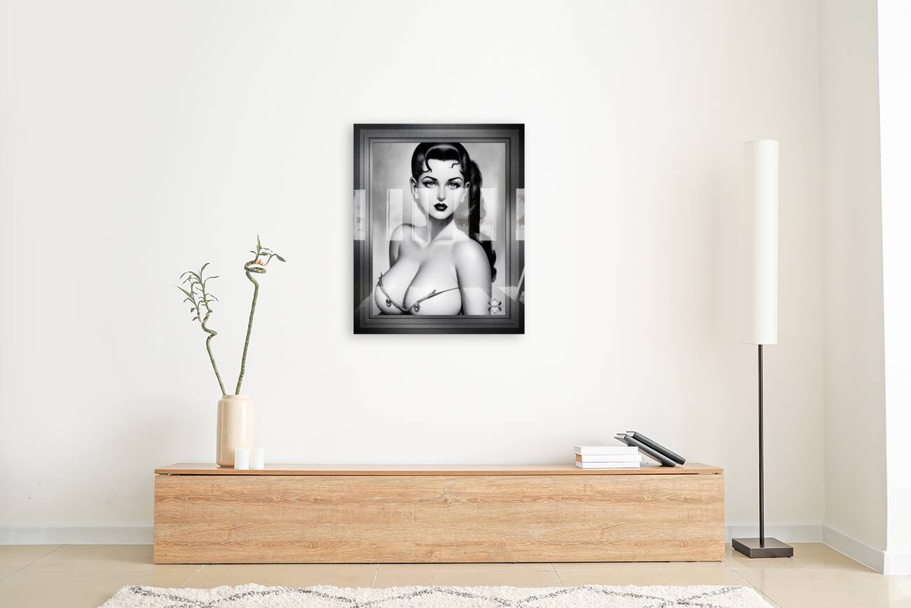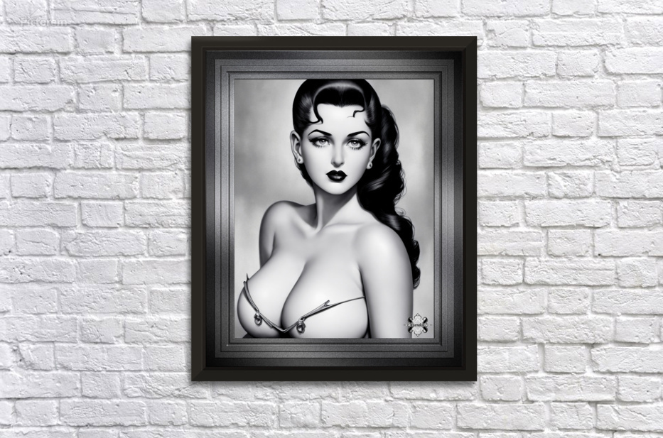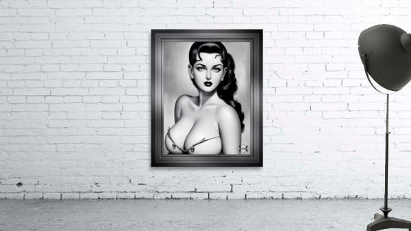 A Gorgeous Sultry 1930s Fantasy Pinup Girl Glamour AI Concept Art Portrait by Xzendor7 Wall Decor Frame