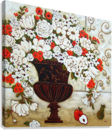 RED AND WHITE BLOOMS WITH APPLES AND PEAR KAREN RIEGER  Canvas Print