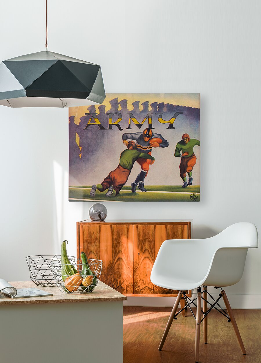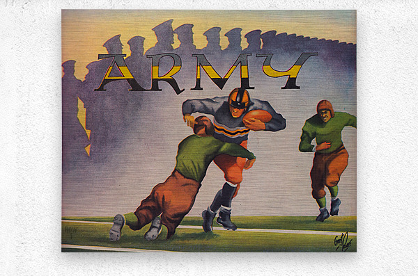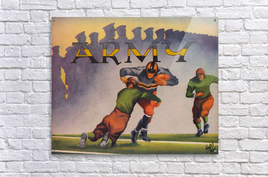 1935 Army Football Art Remix | Artist Grant Powers | Row One | Over 10,000 Historic Sports Prints | Created from 1935 Army football cover art in our physical collection, Row One Brand's Army football cover art remix wall art will look fantastic in your game room or office. Derivative art © 2023 Row One Brand This historic college football art print is not affiliated with, licensed, sponsored, authorized, or endorsed by any college, university, team, league, artist, athlete, coach, other brand, or any licensing entity. This print was created from 1935 cover art printed without a copyright notice.