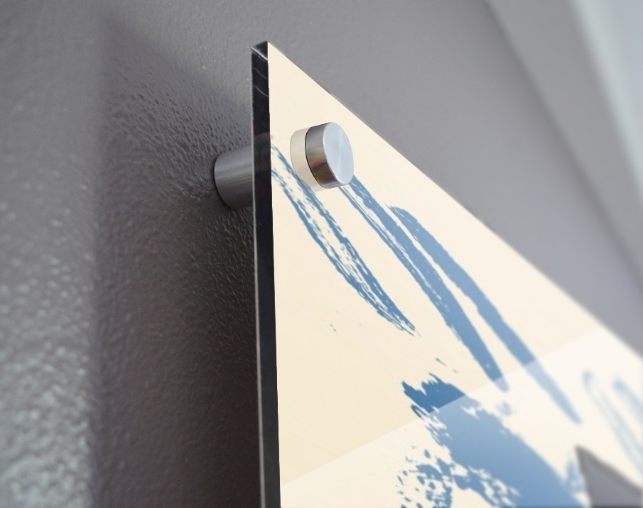 Printed to the edge - Ready to hang - provided with 4 premium polished aluminum stand off ( wall screws and mounting hardware provided )
