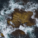 An overhead view of tidal water washing over rocks. © Michel Soucy