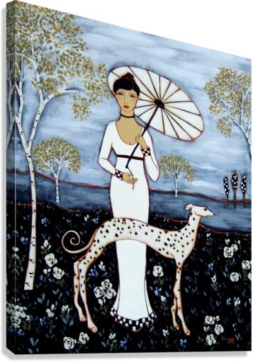 WOMAN WITH BIRCHES AND DALMATIAN KAREN RIEGER  Canvas Print