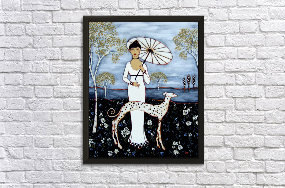Woman with Birches and Dalmatian HD Sublimation Metal print with Decorating Float Frame (BOX)