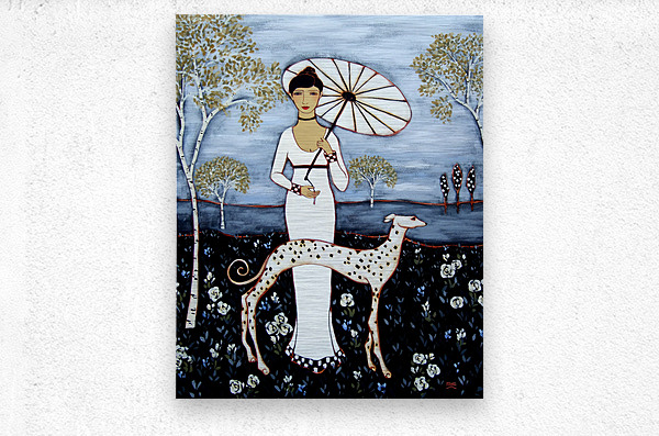 Woman with Birches and Dalmatian HD Sublimation Metal print