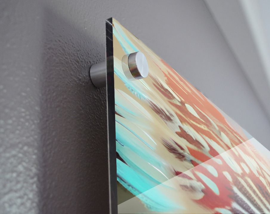 Printed to the edge - Ready to hang - provided with 4 premium polished aluminum stand off ( wall screws and mounting hardware provided )