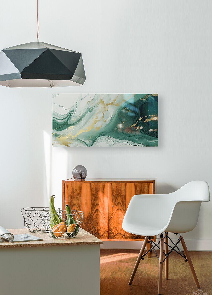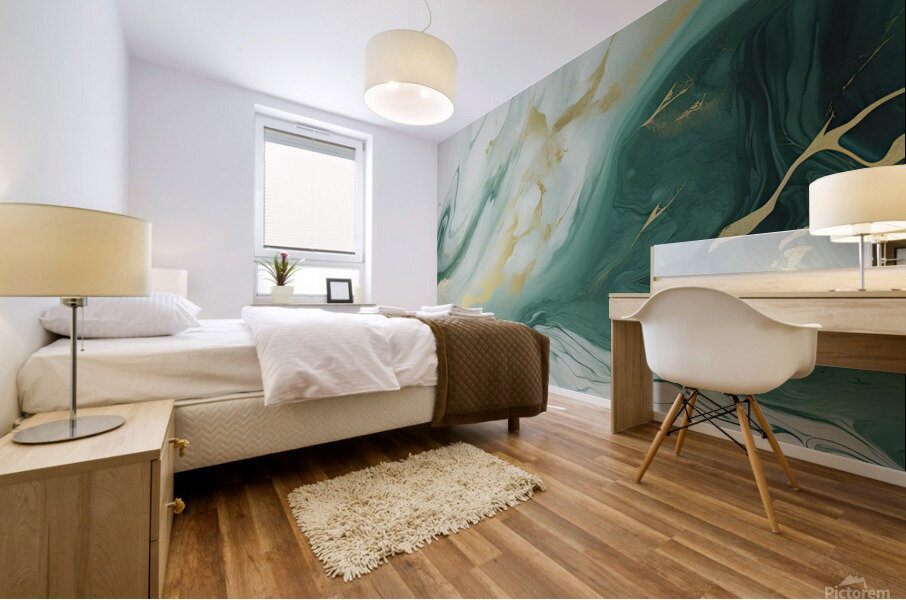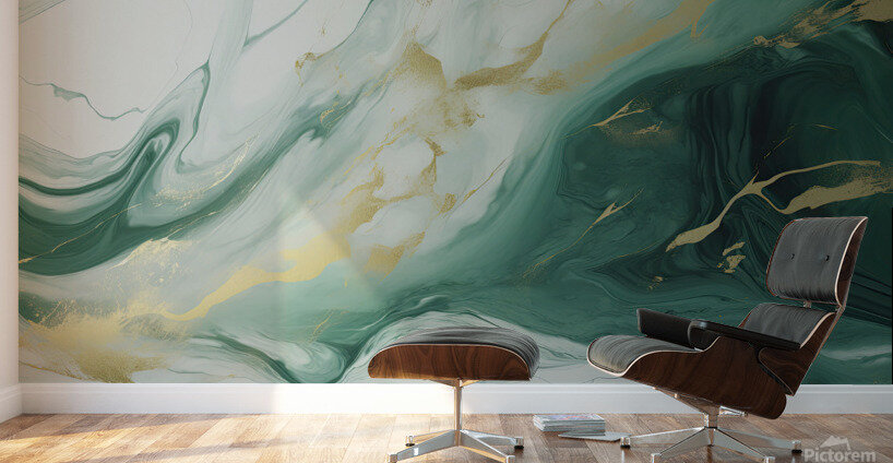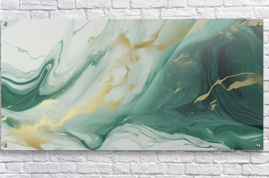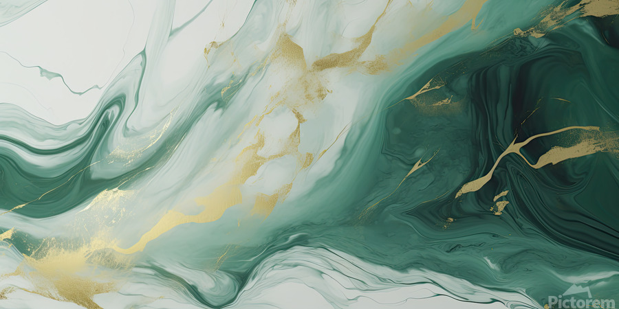 ABOUT THIS ARTWORK: GREEN WHITE GOLD SWIRLED MARBLE