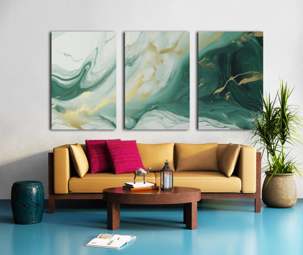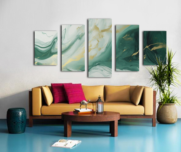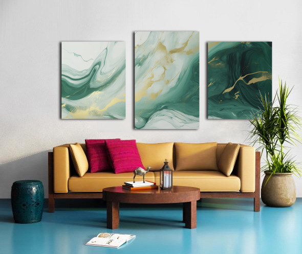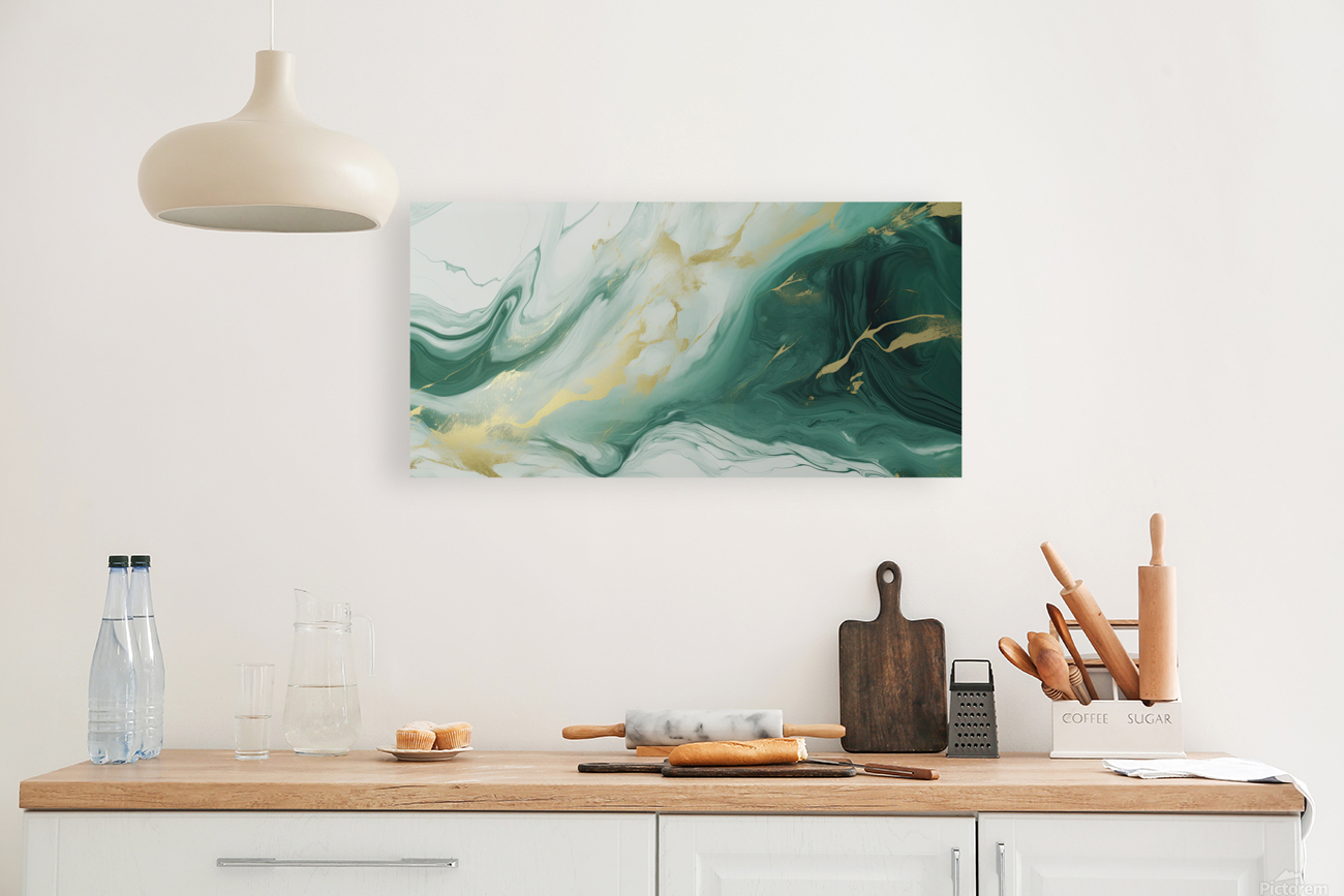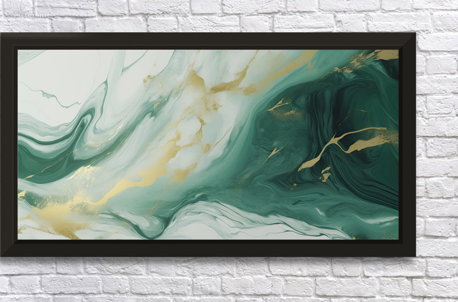 Green White Gold Swirled Marble Picture Frame Printing