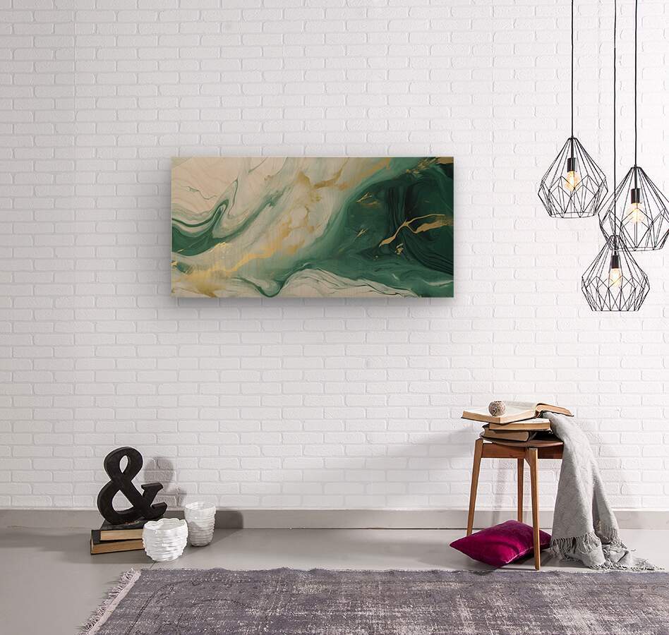 Green White Gold Swirled Marble  Wood print