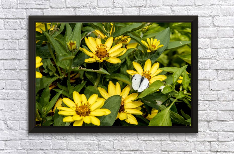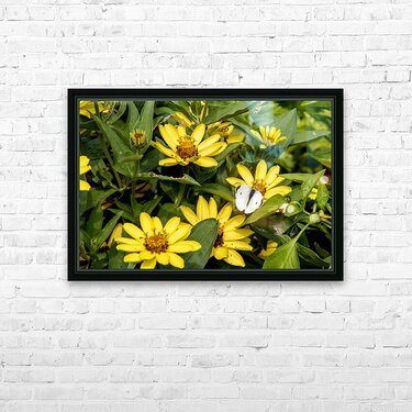 Sunflower Frolic: White Butterfly on Sunflowers Picture Frame Printing