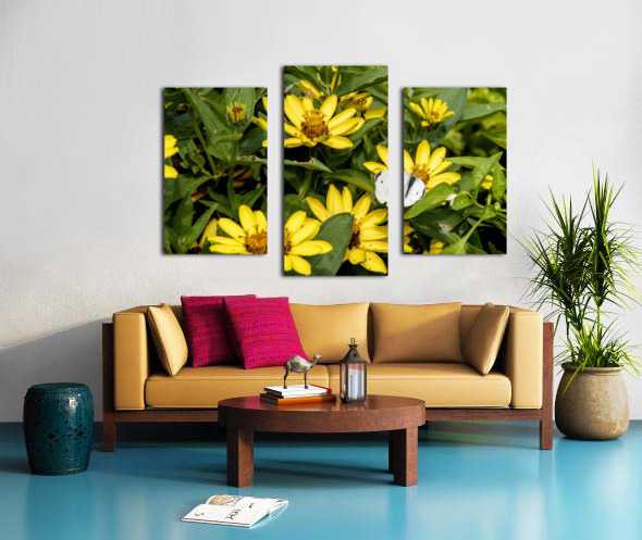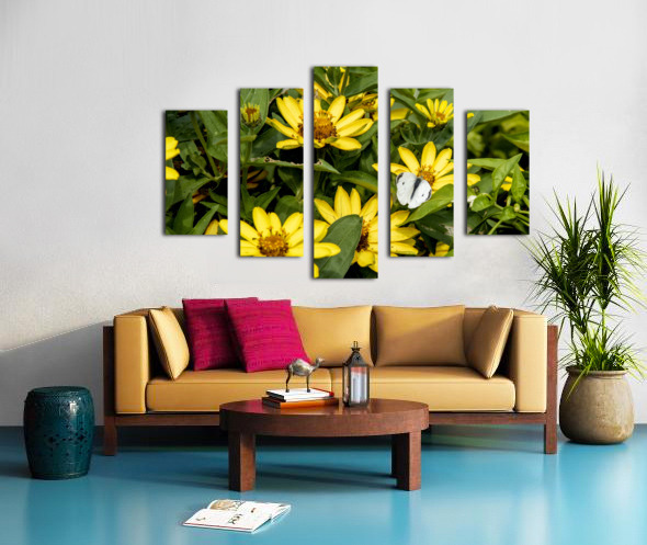 SUNFLOWER FROLIC: WHITE BUTTERFLY ON SUNFLOWERS MELISSA LEFEBVRE  Canvas Print